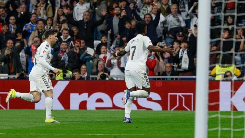 El conjunto local golpeó primero y lo hizo con un gol de los señalados por el madridismo. En el minuto 14, Vinícius Júnior puso el 1-0 con una acción individual brillante, desbordando por la banda y definiendo por arriba ante Batalla.